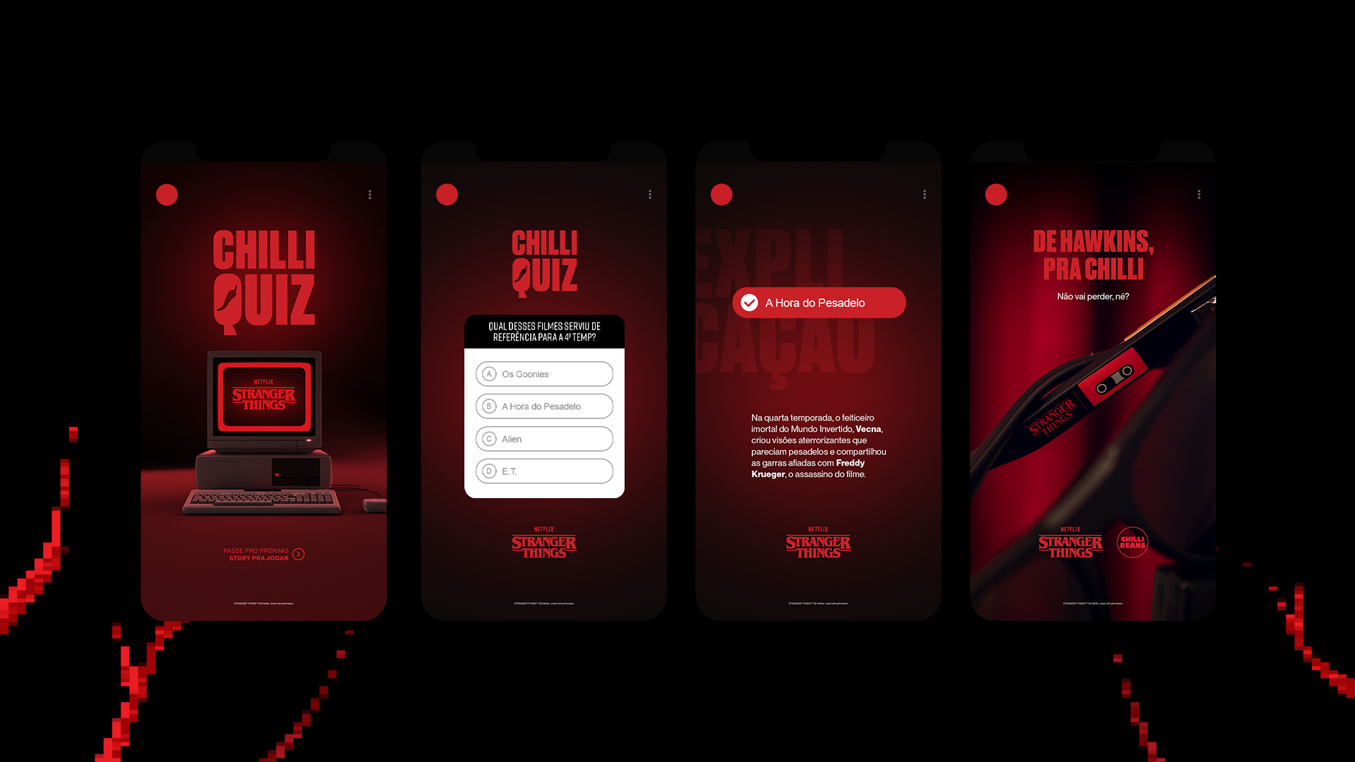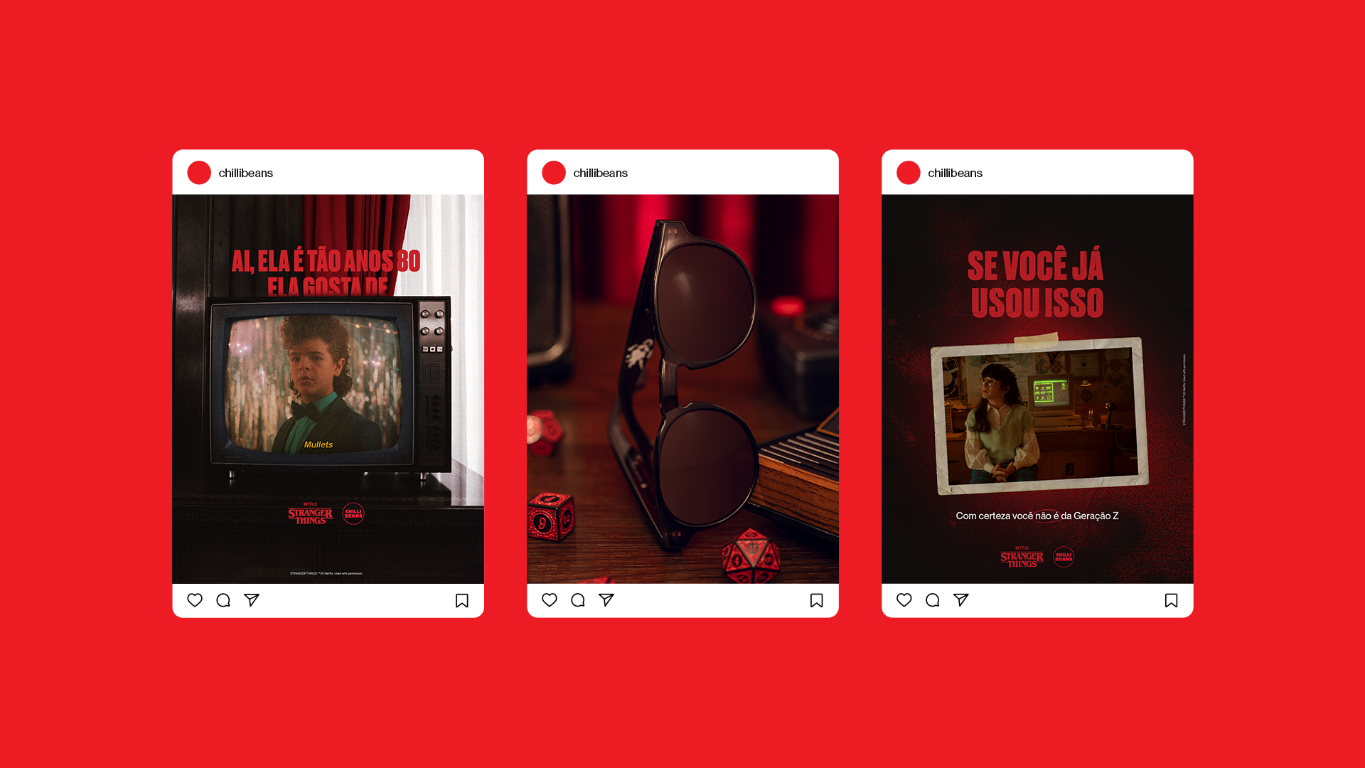 Direção artística, fotográfica e de conteúdo digital para a coleção de Stranger Things lançada pela Chilli Beans em 2024. A campanha foi dividida em dois universos: o mundo real, cheio de atitude, e o mundo invertido, recriado em uma versão nostálgica em 16-bit, honrando os videogames clássicos da década de 80. Agência: House Chilli Beans